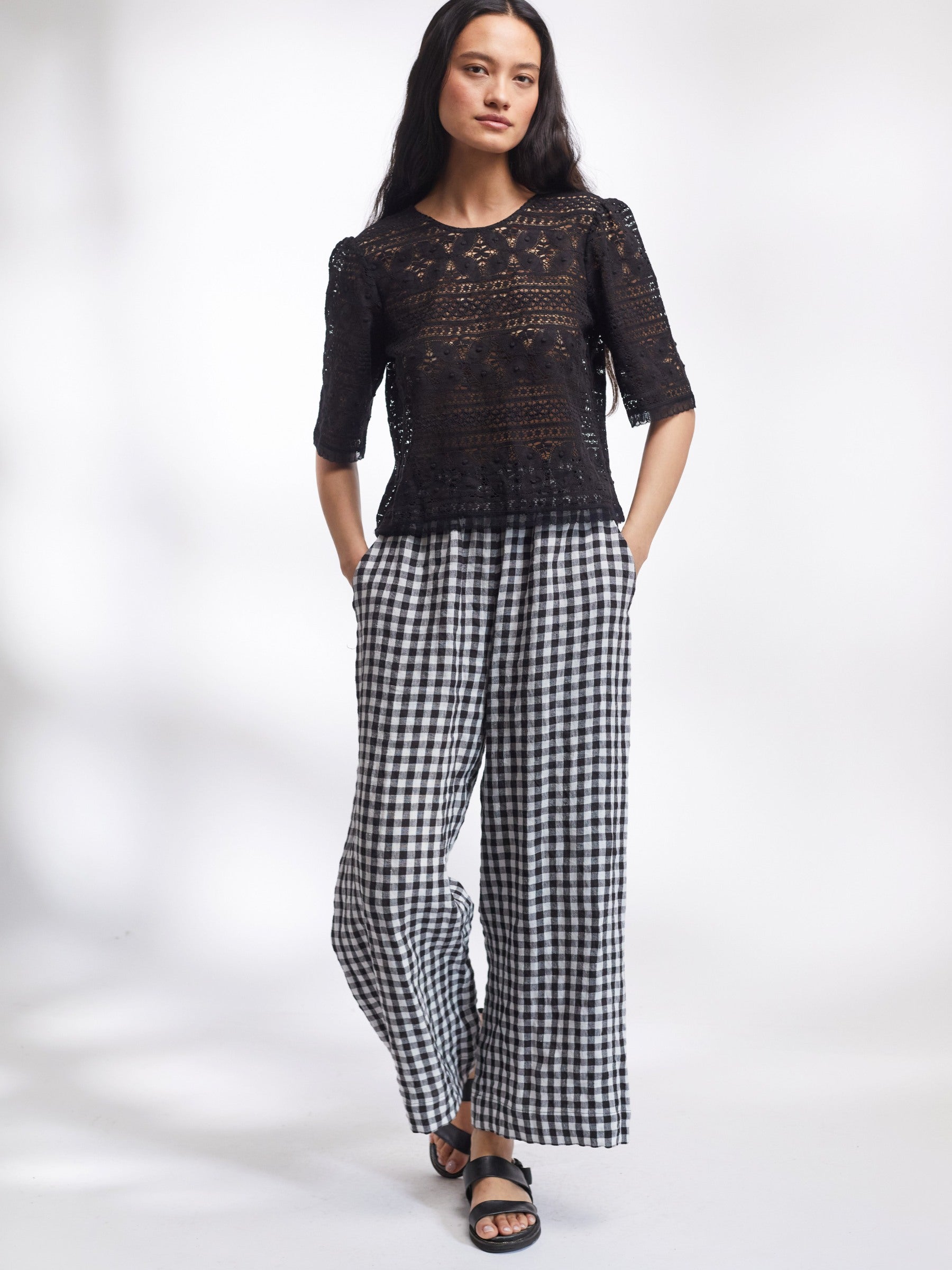 Lavenham Dress in Black and White Gingham Irish Linen