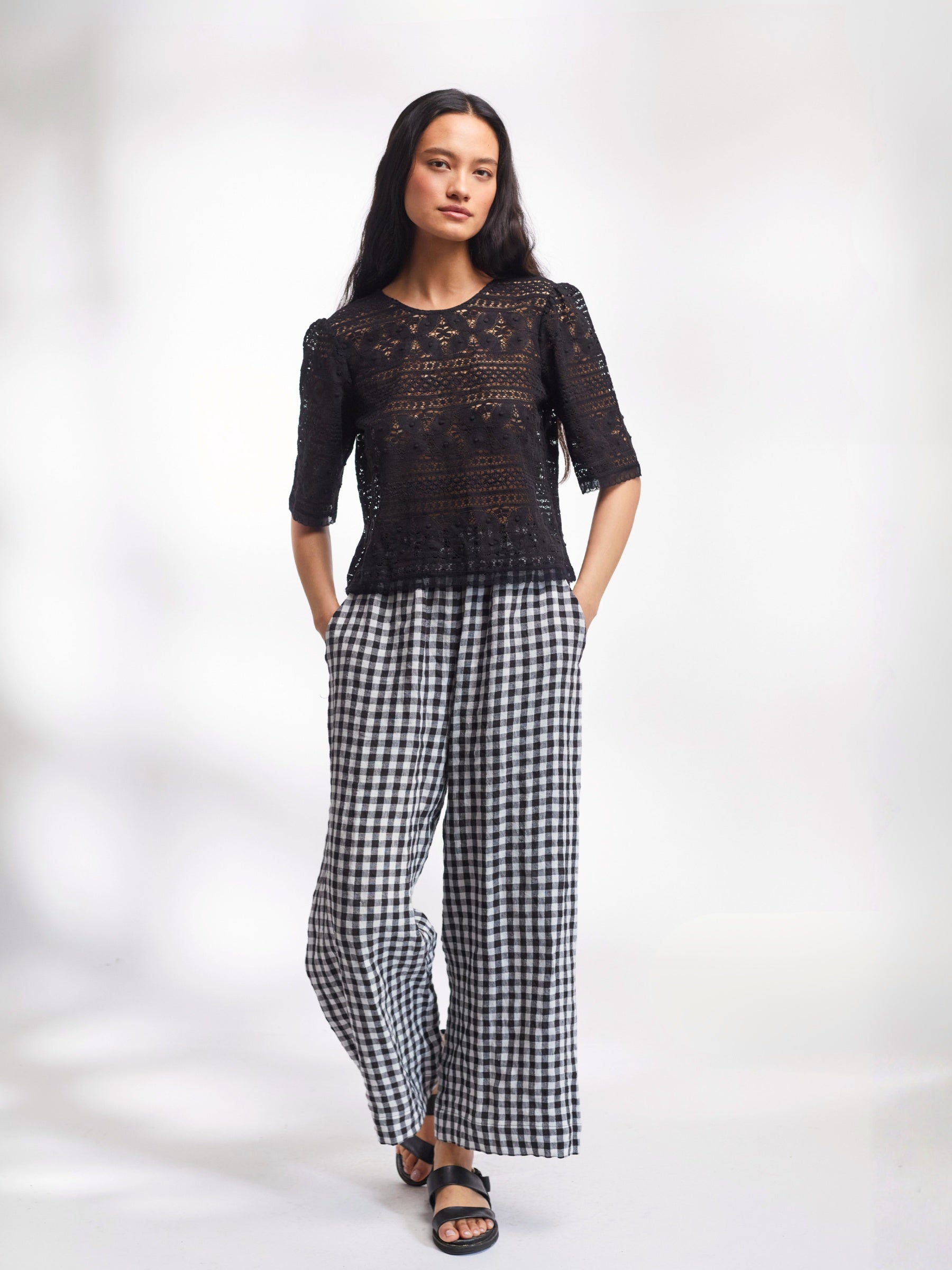 Haworth Skirt in Red Stripe Irish Linen and Nottingham Lace